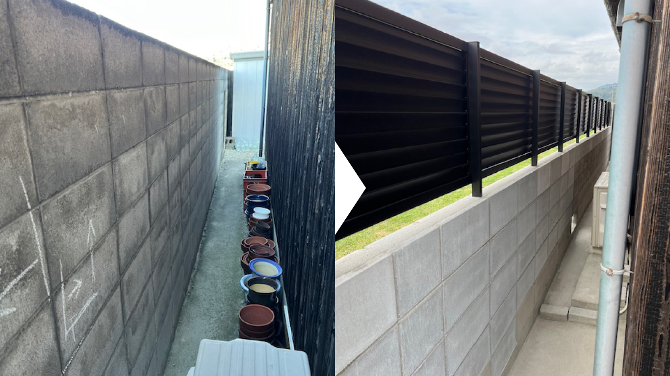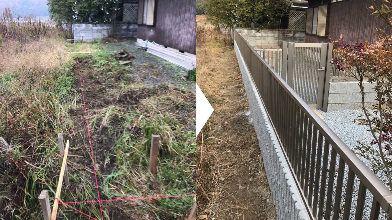 壁・屋根を貼り替え、植木で狭かった駐車スペースが倍くらいの広さになりすっきり使いやすくなりました。