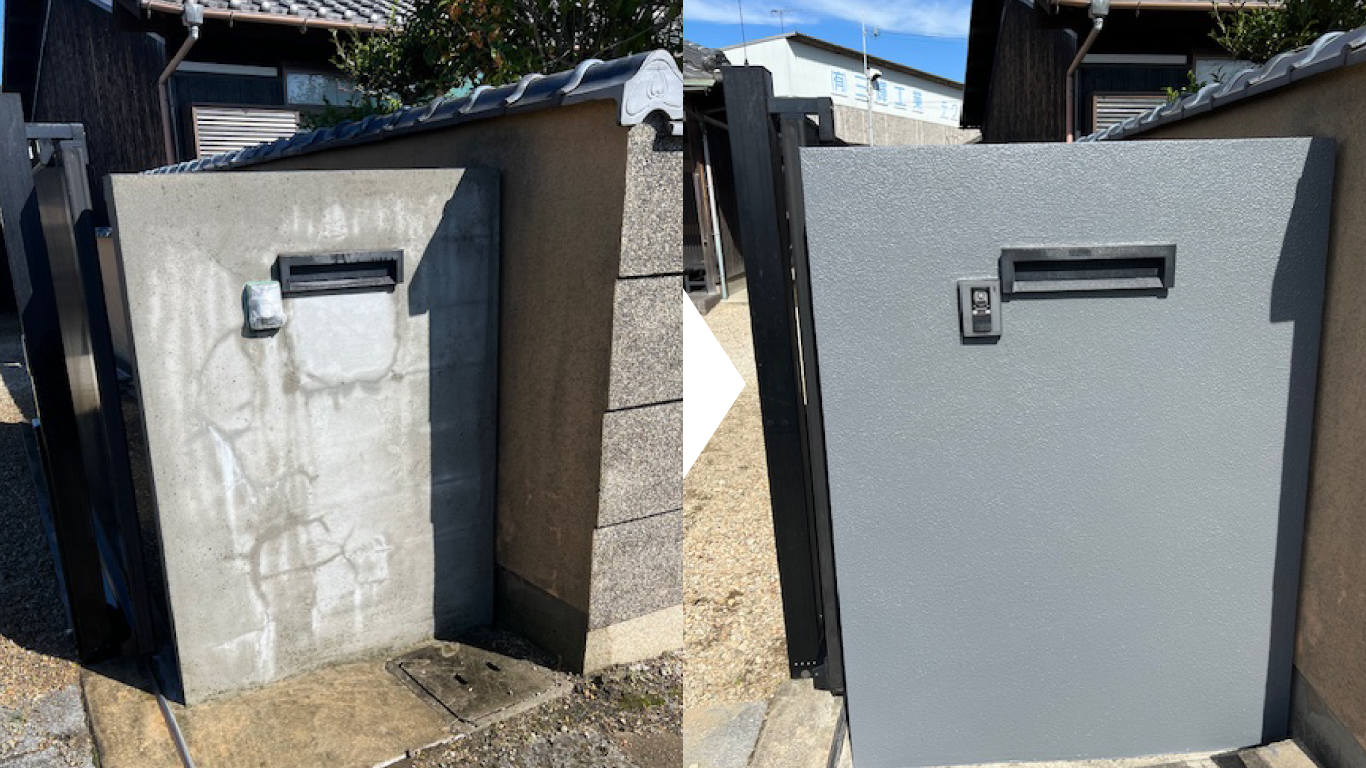 ポスト塀が、白華現象で白く汚れていたので塗装をした。