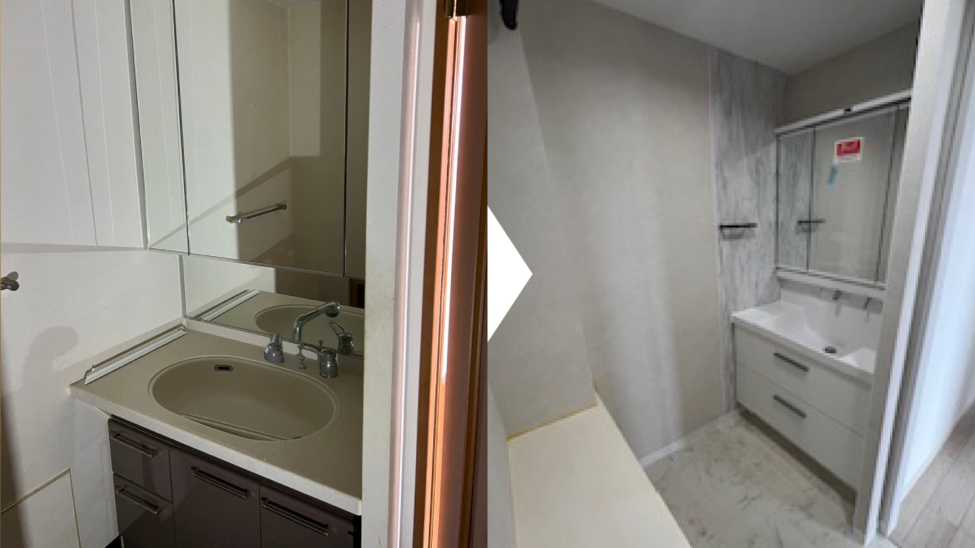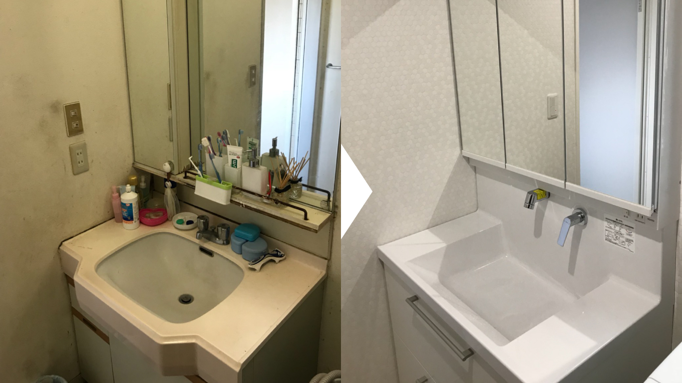 手洗付きキャビネットに変更し、広々とすっきりしました。